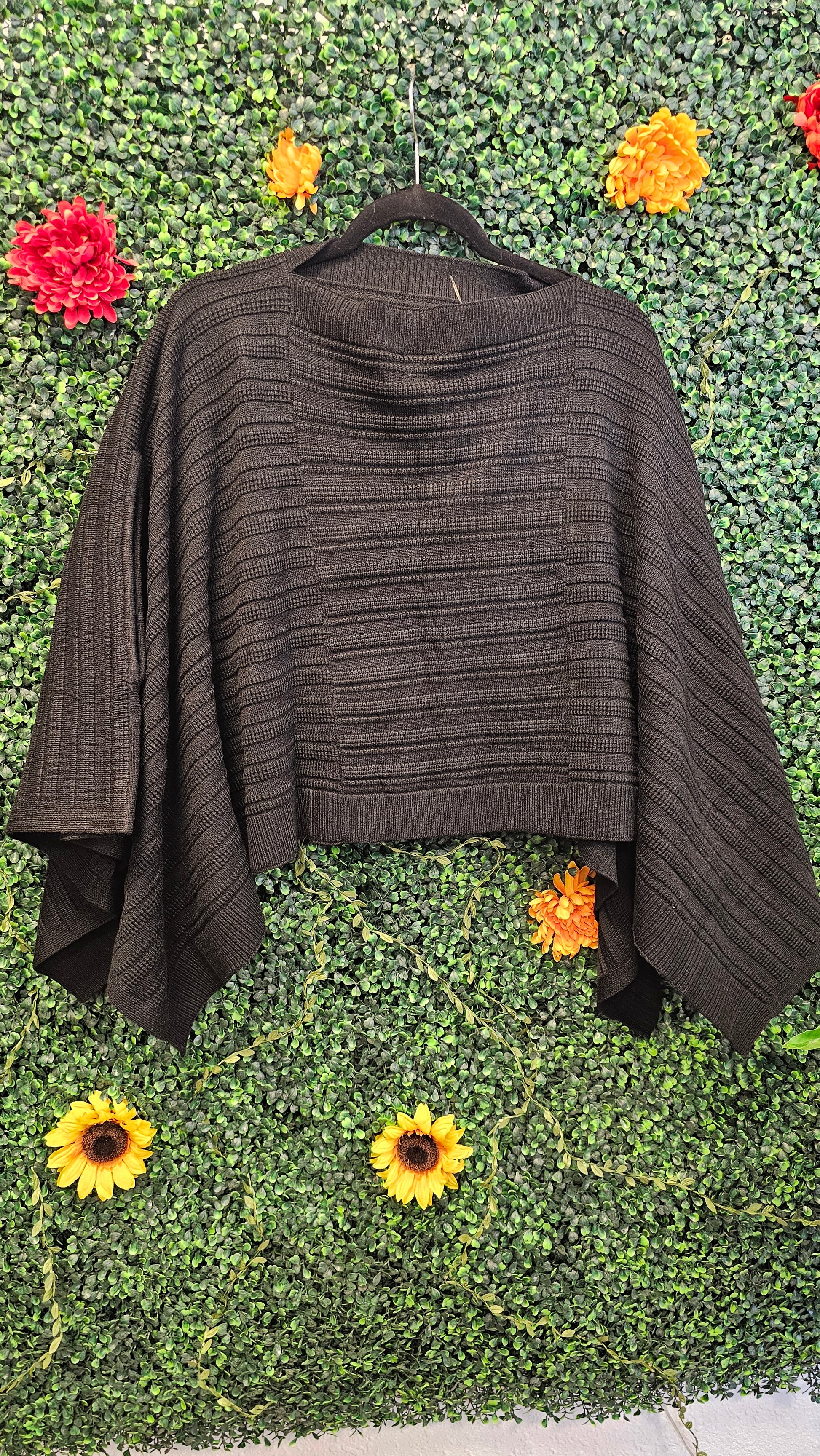 Beautiful Black Poncho Style Black Top. One Size Fit Most