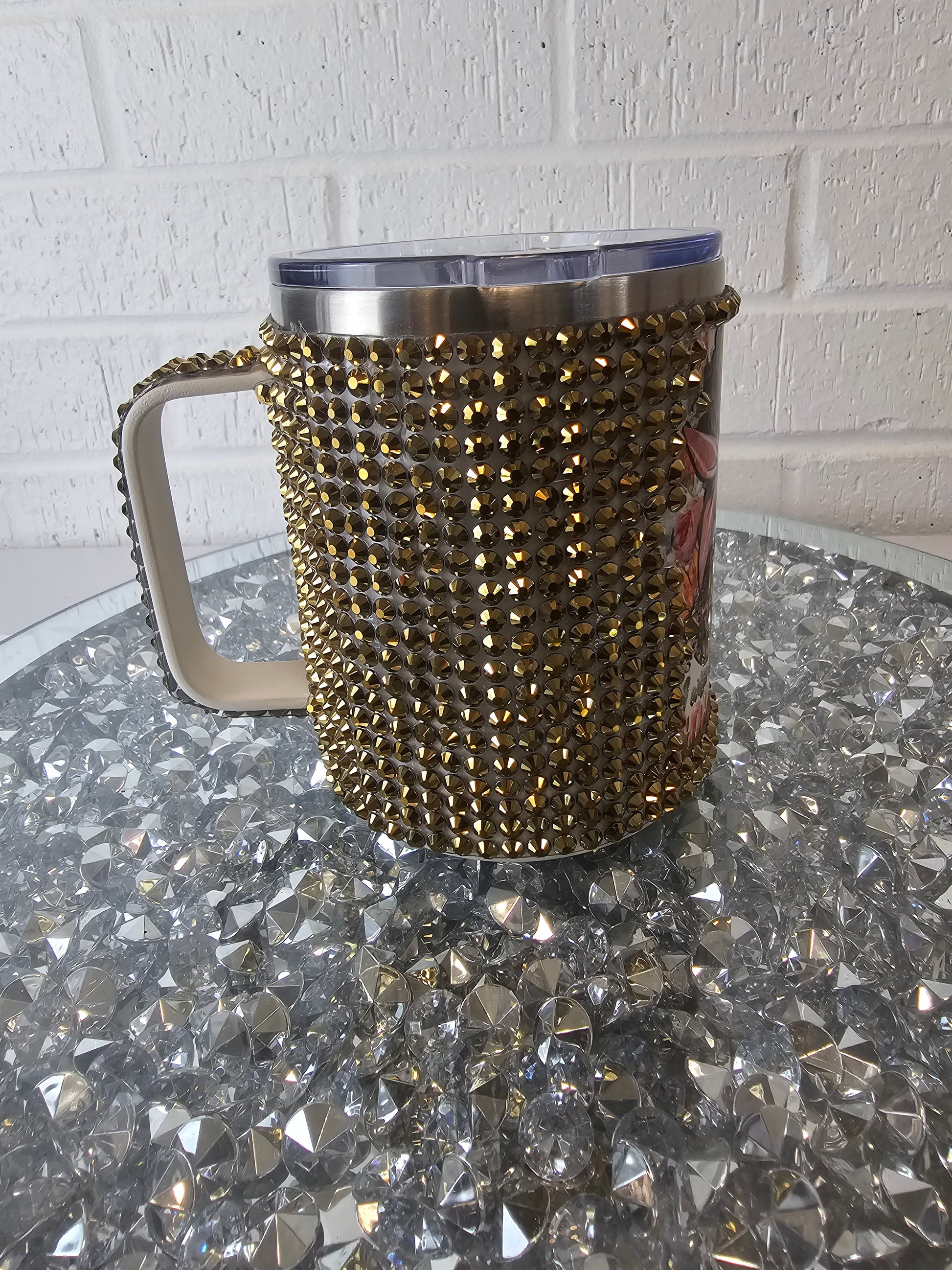 16oz insulated cup. Keeps hot, hot and cold, cold. Custom made. Do not submerge in water. NOT dishwasher safe.