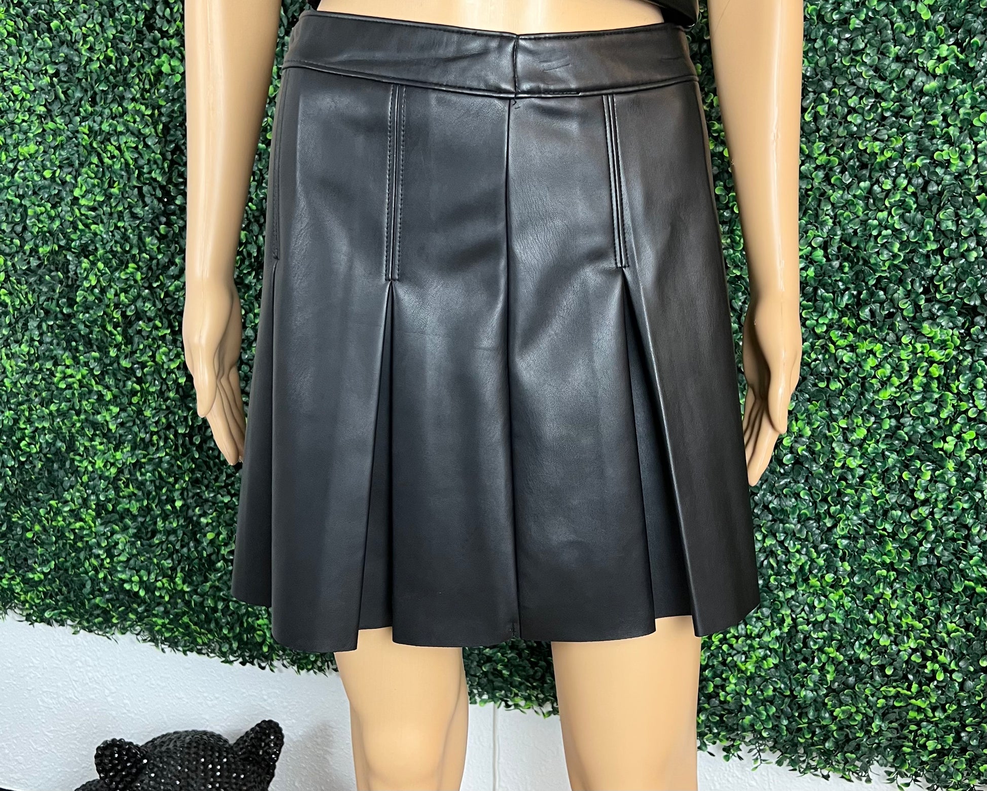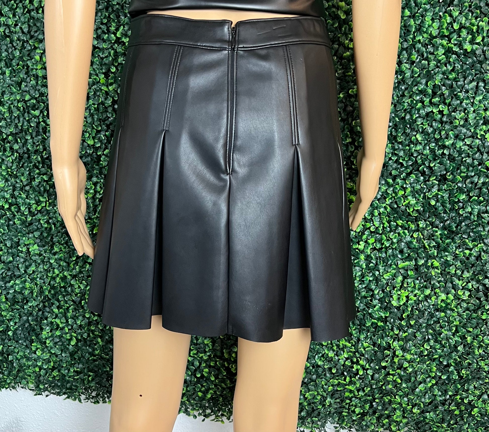 Short Faux Leather Pleated Skirt