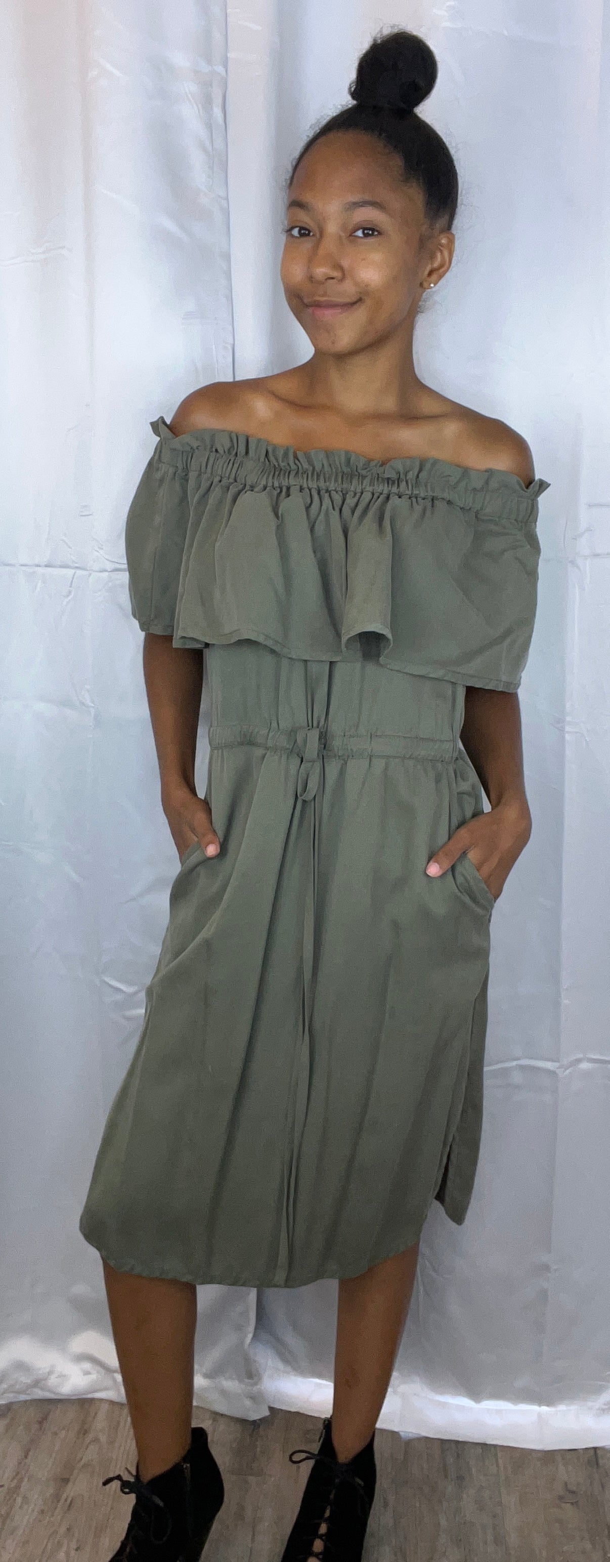 This is a dress with sleeves that be worn on or off the shoulder and has pockets. (gently worn)