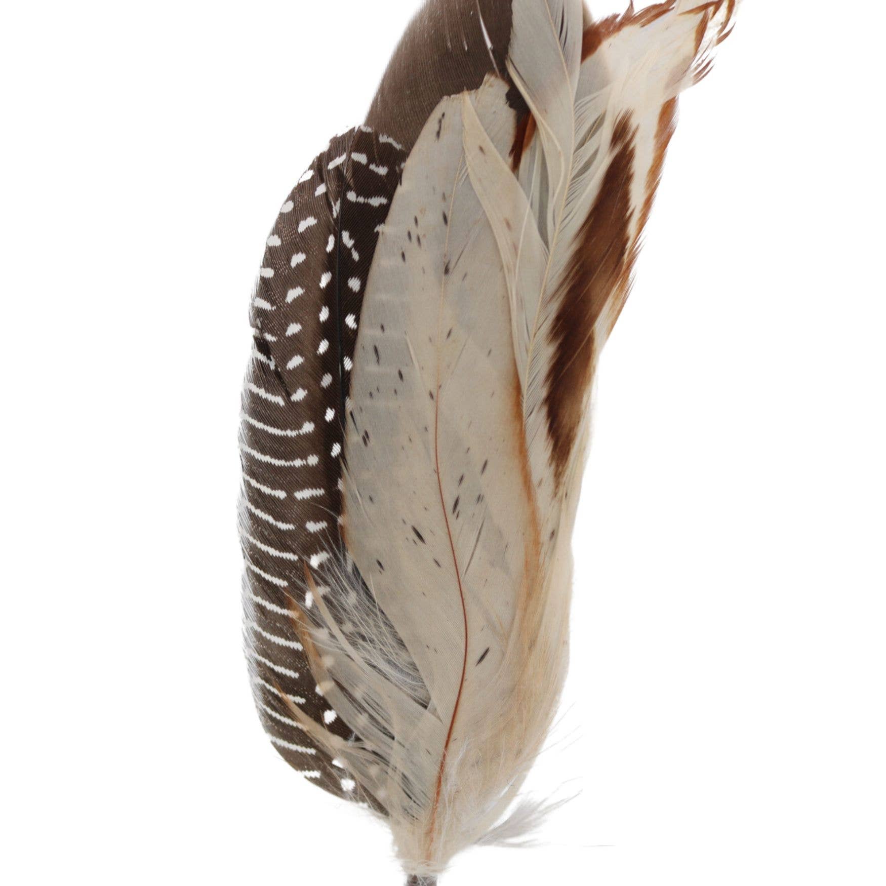 The Cheyenne hat feather is hand constructed with a brown and cream feathers for a natural hat accent. Tuck into the band of any hat.