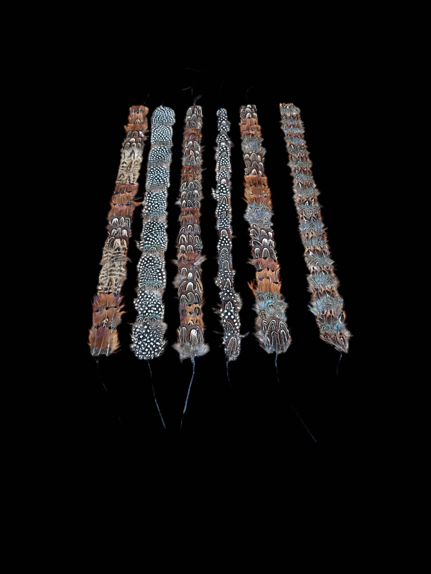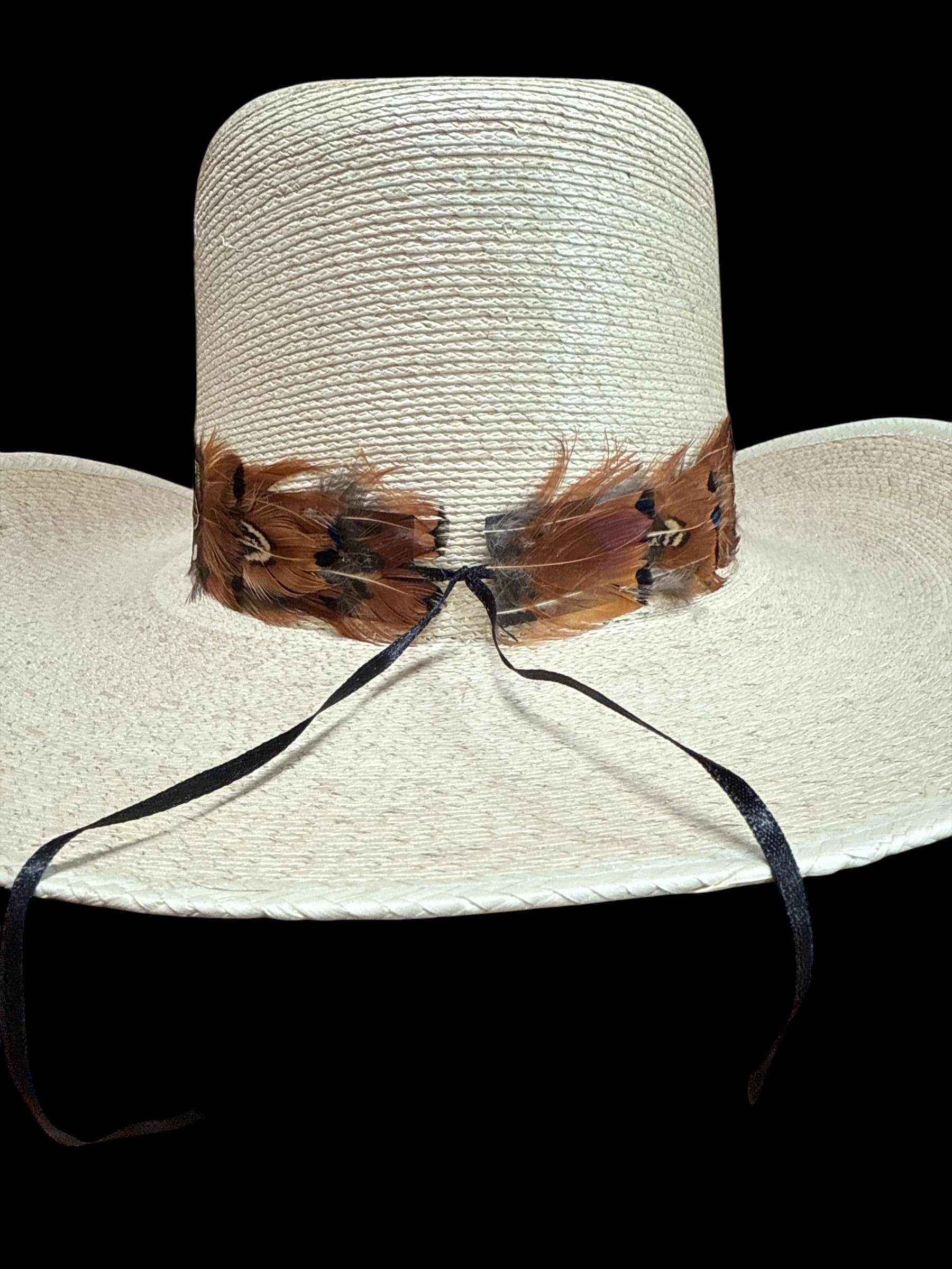 These bands have a ribbon back holding the feather together and a ribbon thin strap on each end of each side to tie a knot. Allowing you room for larger hats.