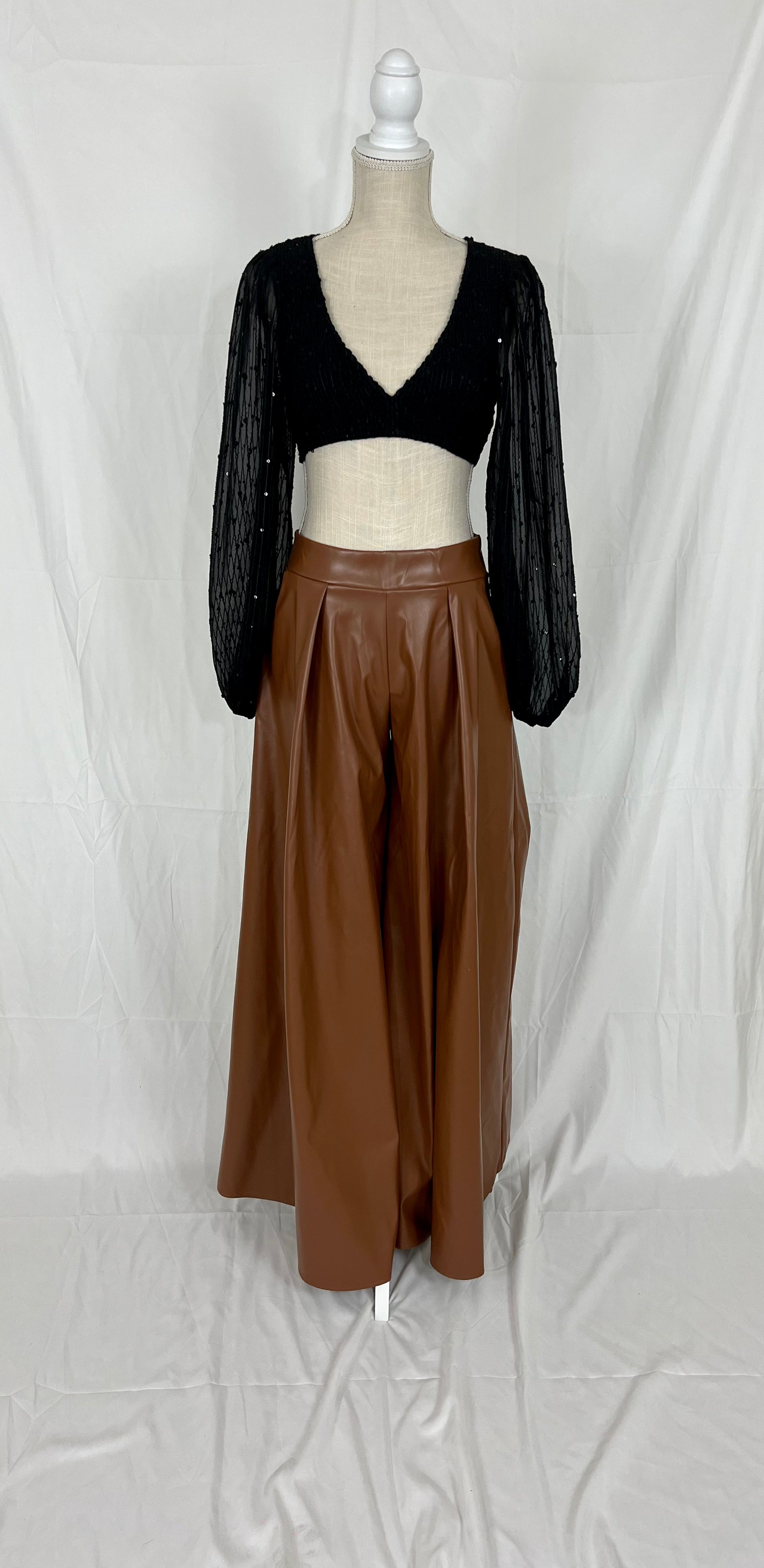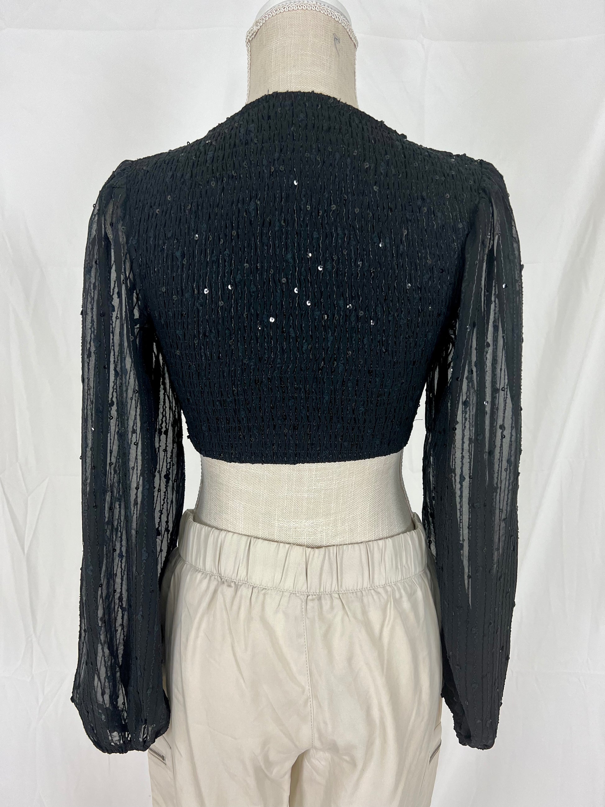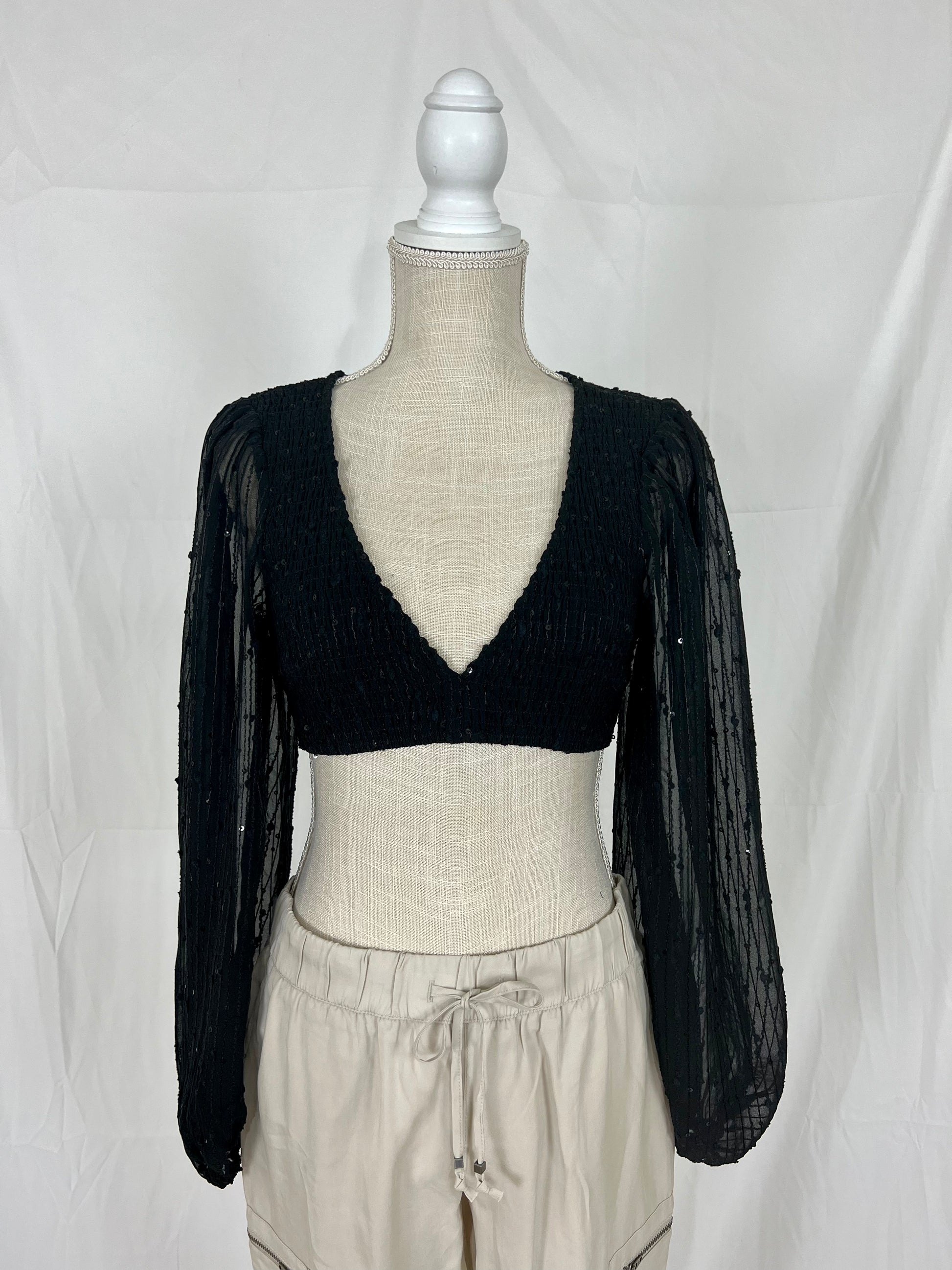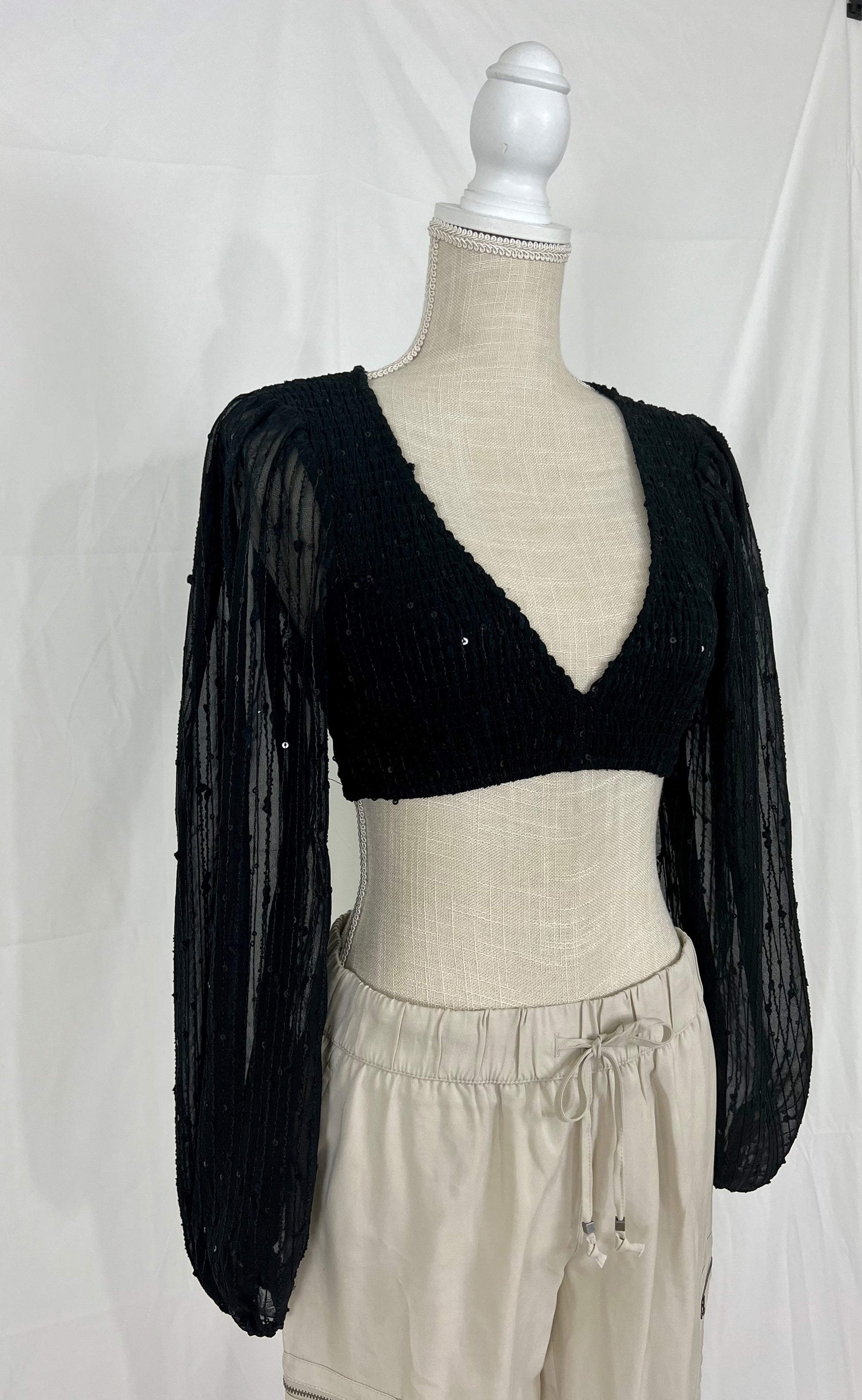 This is a long sleeve, v-neck, sequined bra top.