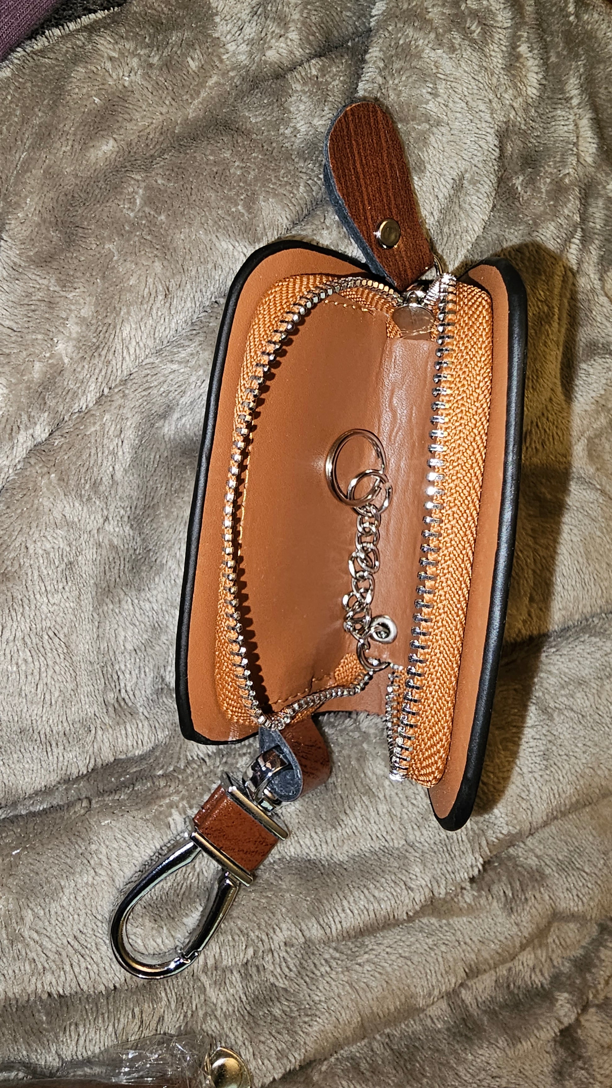 Completely Enclosed and Zipped Shut. Keeps Fob Clean and Safe.