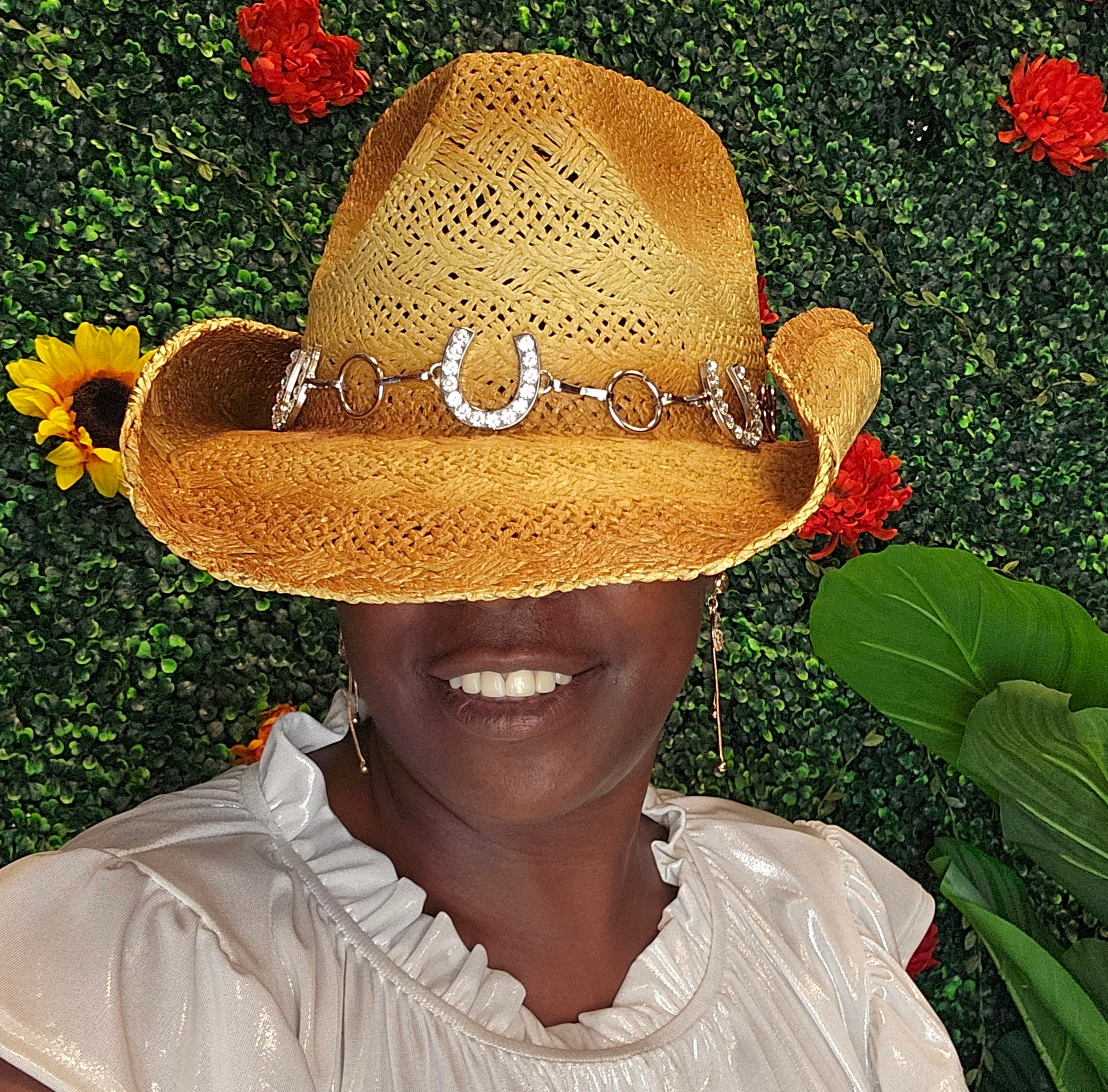 Straw hat with lucky Horseshoes