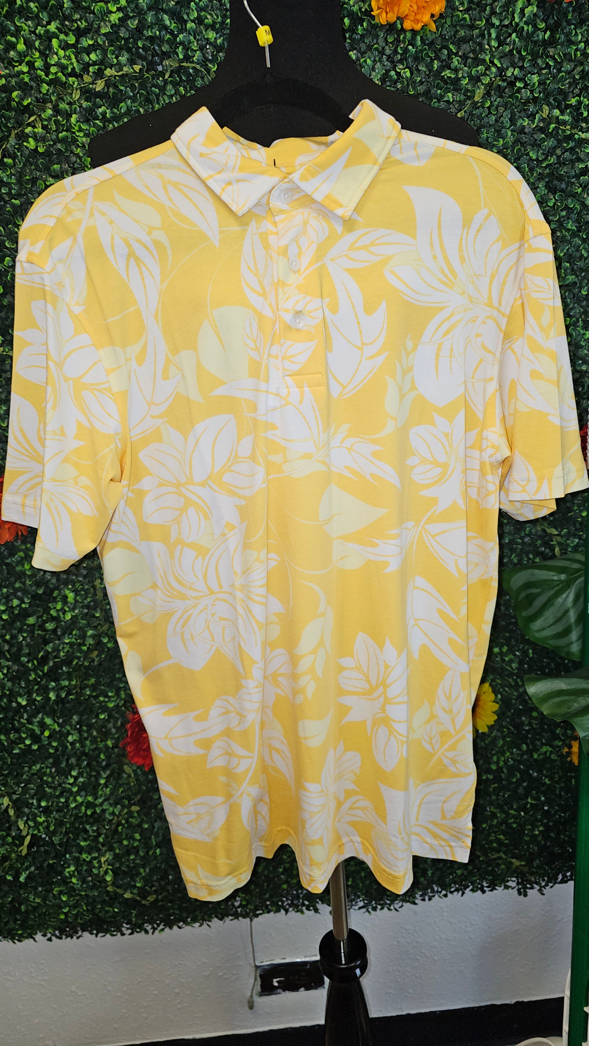 Yellow with White Flowers is the perfect Vacation Polo Shirt