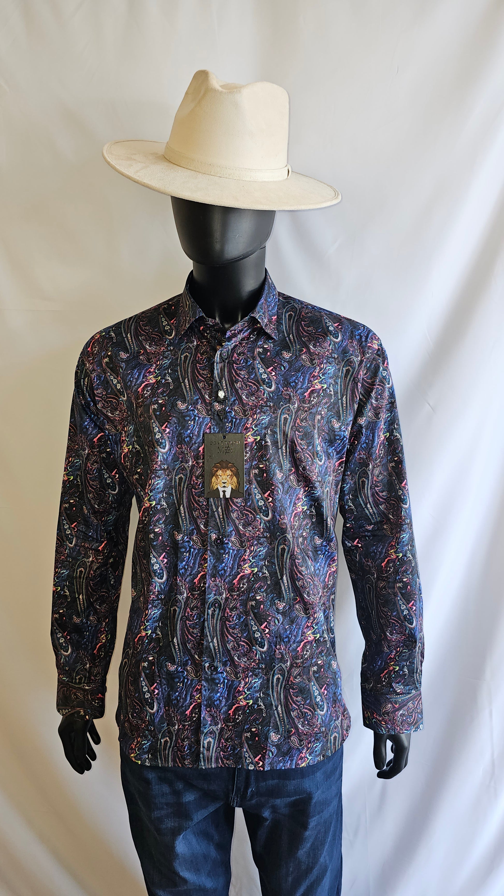 Maceoo Fibonacci Button Down Shirt. Perfect for any occasion. Purple, Navy, Pink Pasley