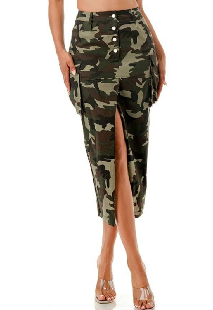 Camo Cargo Skirt with Front Split