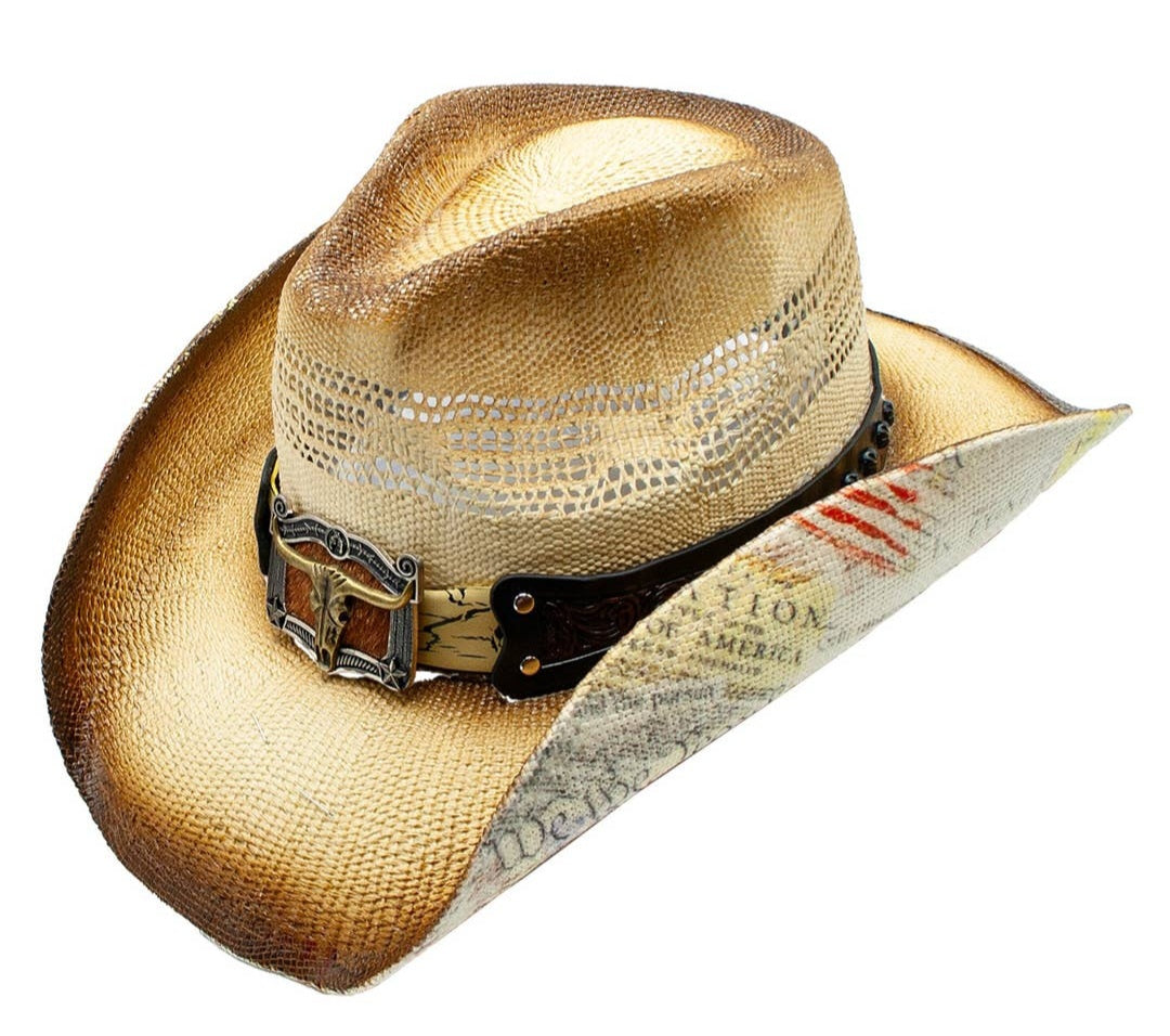God Bless America Hat. 100% Toyo Straw