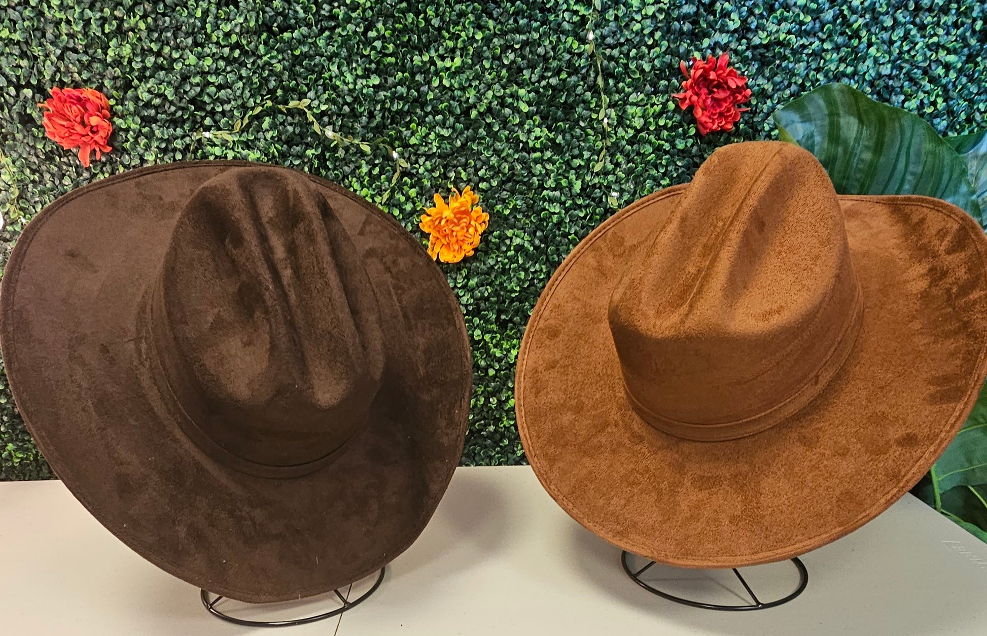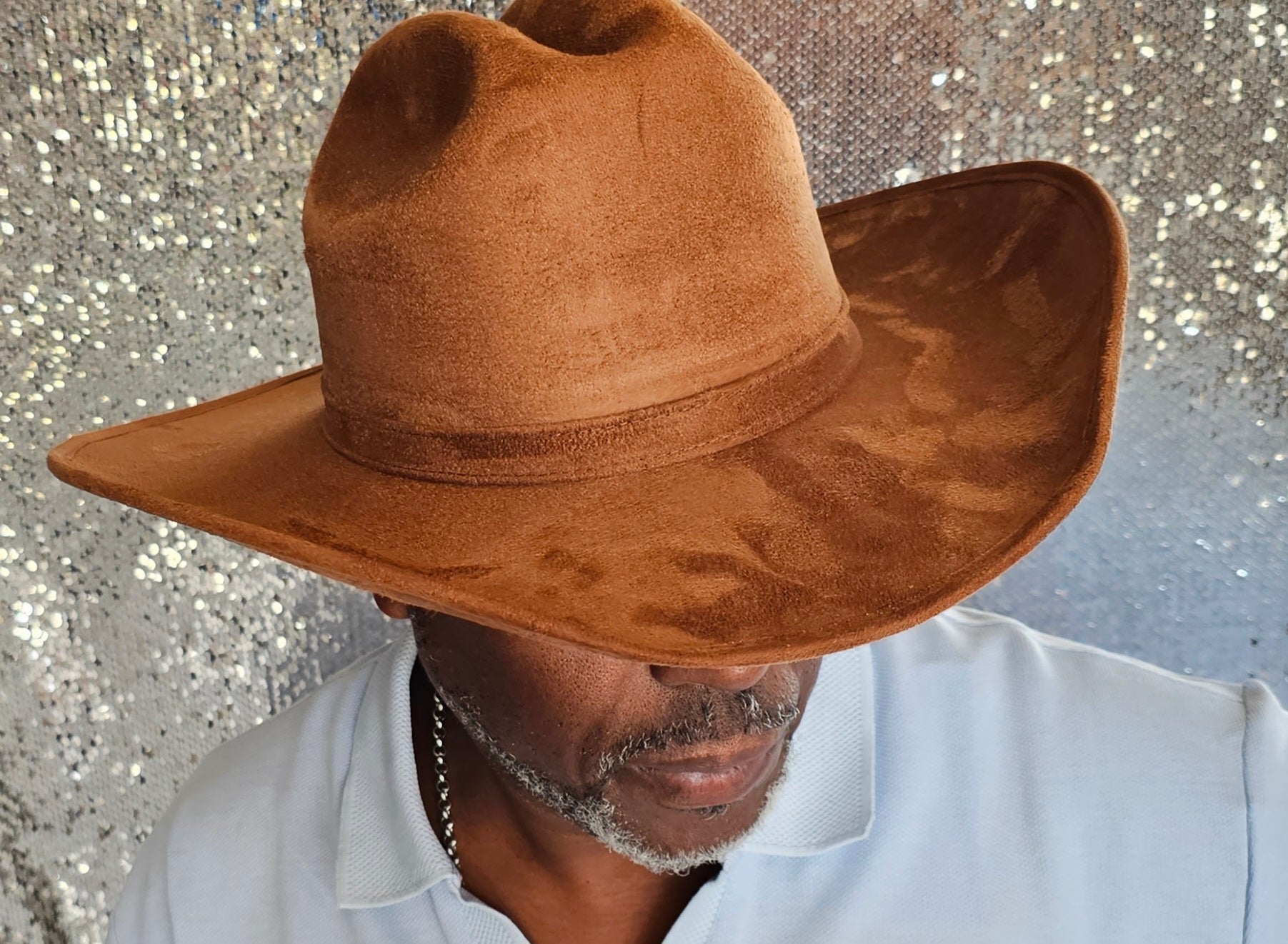 High Quality, Stiff Brim, Vegan Suede Cowboy Hat
