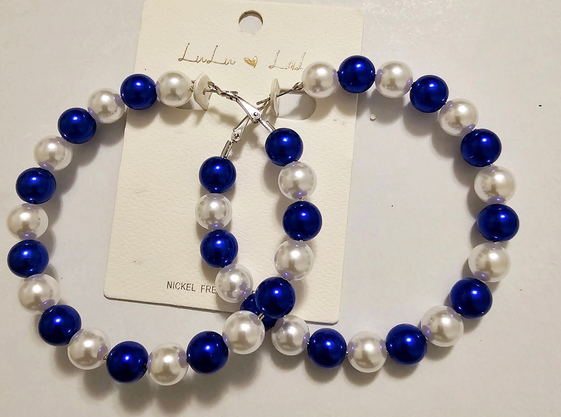 Sorority of ZPB rhinestone earrings. Blue & White 3 inch Hoops